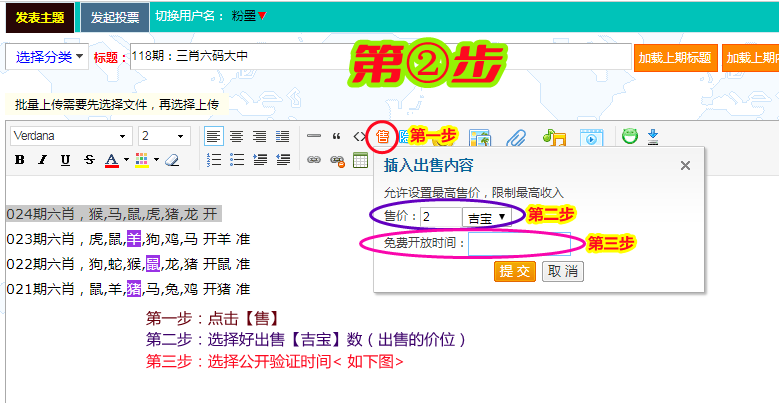 按照以下图片参考步骤进行操作即可;特别注意在设置出售价以及公开验证时间的正确操作,否则一切后果由发表者承担!